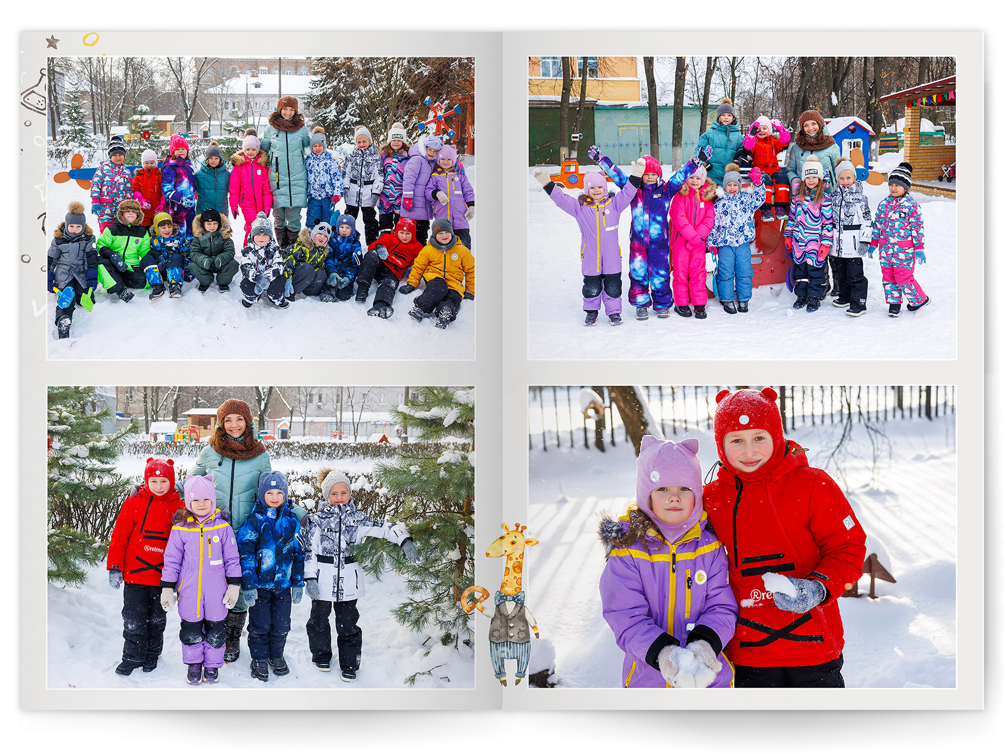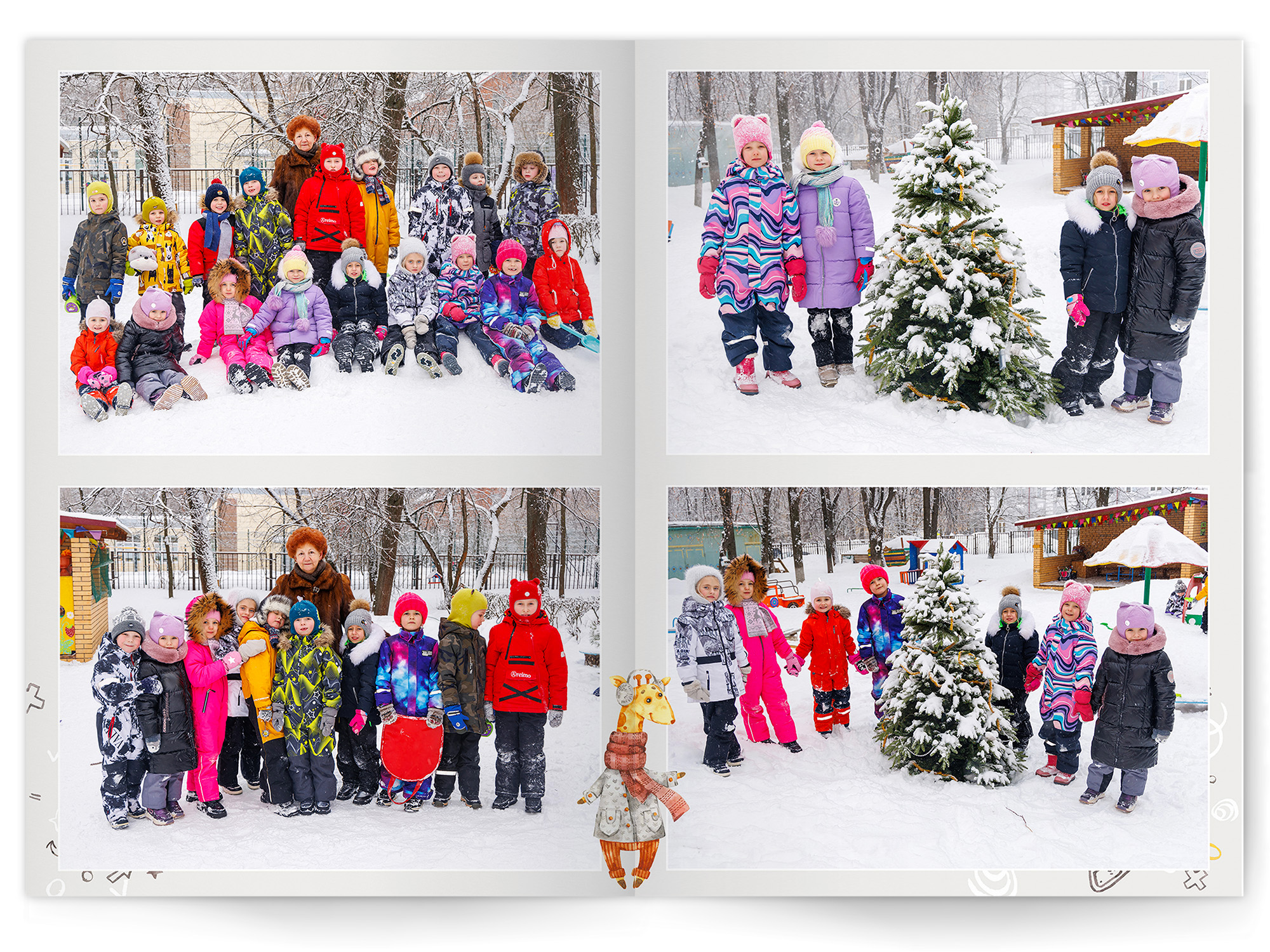 • Портреты всех детей и воспитателей на развороте